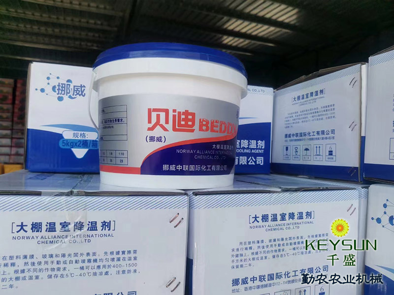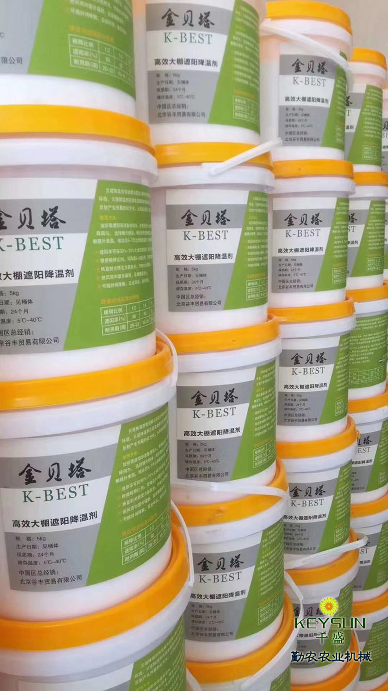 山東禹城勤農(nóng)大棚降溫劑能有效解決蔬菜大棚內(nèi)強光和高溫問題,為作物提供理想的溫光生長環(huán)境。降溫劑在溫室表面形成白色涂層,將太陽直射光轉(zhuǎn)變?yōu)樯⑸涔猓⒂行Х瓷洚a(chǎn)生熱量的紅外光,從而起到遮陽、降溫、防止棚膜老化